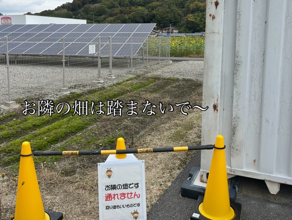 裏のひまわり畑への道はお隣さんの畑です。回り道もいいものです!