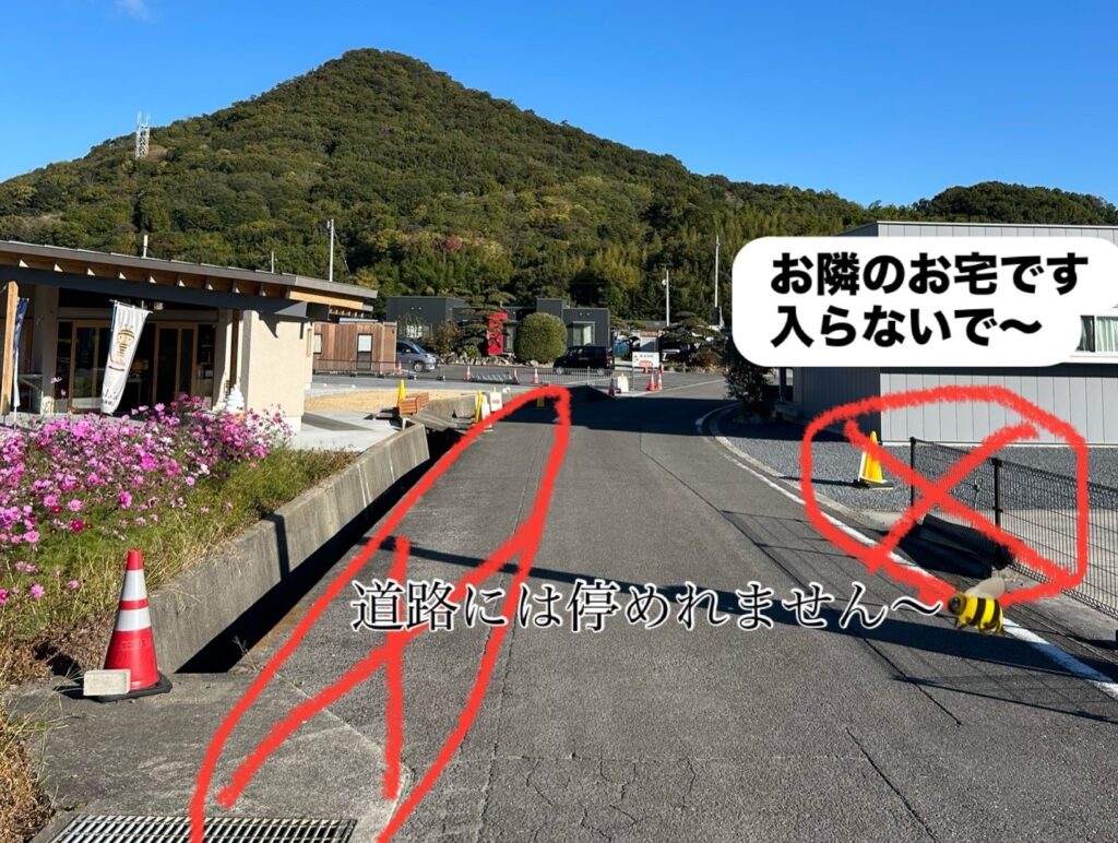 お店前の道は生活道路です!特にお隣のお宅へ入ってのUターンや駐車はマナー違反です