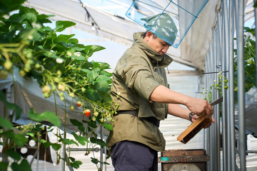 遠藤さんのいちごは中田養蜂のミツバチ達が受粉しています。今年はミツバチが不足し受粉に途中から出荷できずご迷惑をおかけしてしまいました・・・。